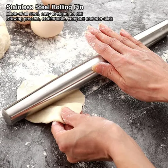 Välkommen till vår butik! Denna högkvalitativa kavel i rostfritt stål är perfekt för pizza, pajskal, tårtor, kakor och mer, vilket gör den till ett idealiskt verktyg för både hemmakök och bagerier. Tillverkad av rostfritt stål 304, erbjuder den hög hårdhet och utmärkt korrosionsbeständighet, vilket säkerställer att den uppfyller säkerhetsstandarder och är giftfri och smaklös. Det ergonomiska handtaget är utformat för halkfri komfort, vilket gör den till en pålitlig kökshjälpreda. Dess böjda yta med dubbla huvuden är särskilt lämplig för uppgifter som att laga barnmat eller mosa potatis. Den non-stick-beläggningen gör den enkel att använda och bekväm att rengöra. Du får 1 x kavel, som är 100 % helt ny, med en längd på cirka 32 cm, en diameter på cirka 2,5 cm och en vikt på cirka 200 g. Nöjdhet: Våra kunder är vår högsta prioritet. Om du upptäcker några produktproblem efter att du mottagit varorna, såsom skador eller felaktig mängd varor, vänligen kontakta säljaren omedelbart. Vi gör vårt bästa för att ge dig tillfredsställande eftermarknadsservice.