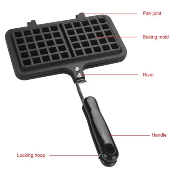 Välkommen till vår butik! Detta verktyg för våffelbakning är tillverkat av högkvalitativ aluminiumlegering, vilket säkerställer att det är säkert, robust och hållbart. Ytbeläggningen ger en non-stick yta, vilket gör den lätt att rengöra. Det långa handtaget är designat för enkelt grepp och värmeisolering, vilket skyddar dina händer från att brännas. Denna våffelbryggare är lätt att använda, ren och har låg strömförbrukning. Med sitt dubbla huvud och större kapacitet kan du göra fler våfflor på en gång och dela dem med din familj. Den är säker att använda på en gasolspis men inte lämplig för en induktionsspis.
