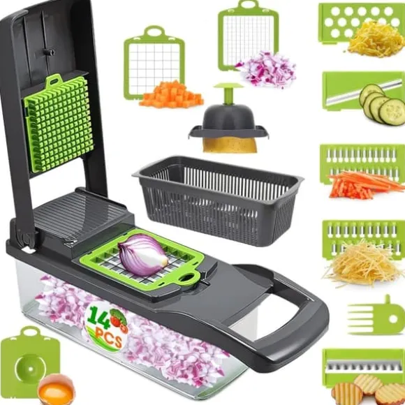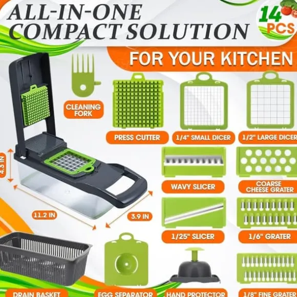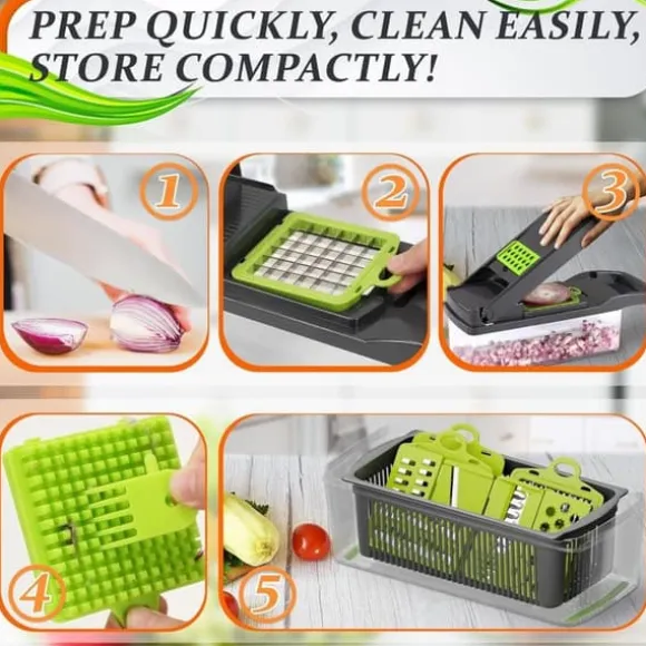 Allt-i-ett: Hacka, skiva, tärna och förvara i samma enhet – effektiviserar köksrutiner och sparar tid.
