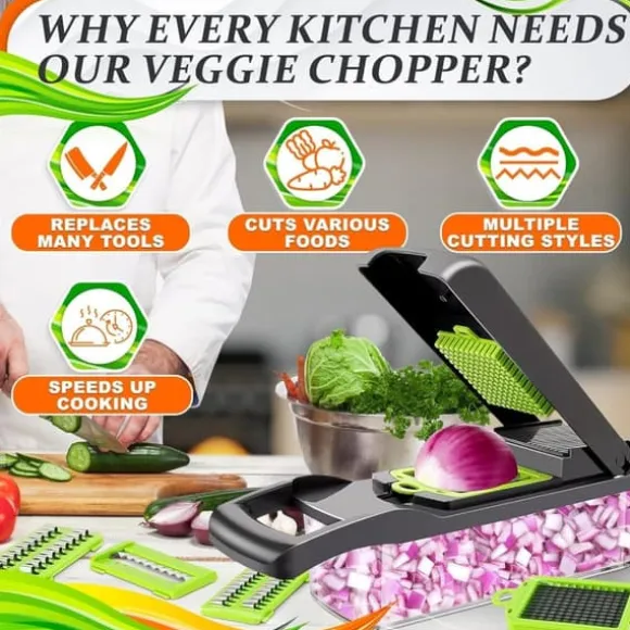 ✨ Perfekt för alla måltider: En praktisk och tidssparande grönsakshackare som passar alla kök, från vardagsmatlagning till festmåltider.