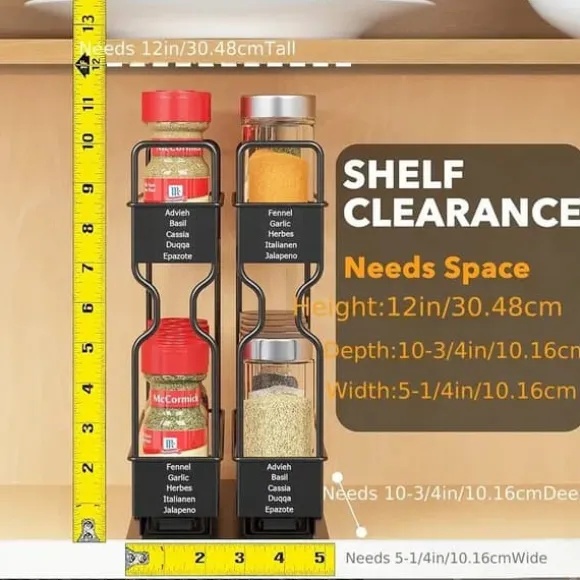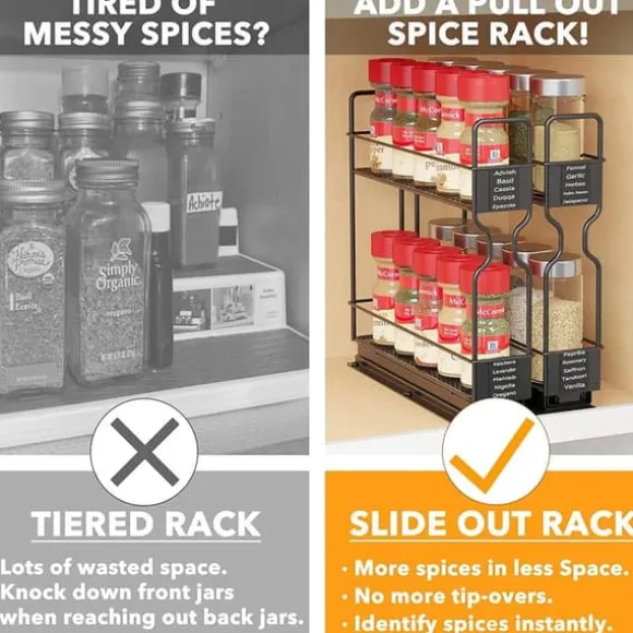 Denna utdragbara kryddhylla maximerar förvaringsutrymmet och gör det enkelt att komma åt dina kryddor.
