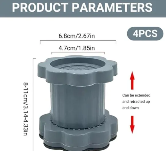 Höjdjusterbar: de halkfria mattorna för tvättmaskin har en perfekt justerbar design som kan öka höjden efter behov, och vibrationsmattorna för tvättmaskin och torktumlare kan öka enhetens höjd, förhindra fukt och göra rengöringen enklare.