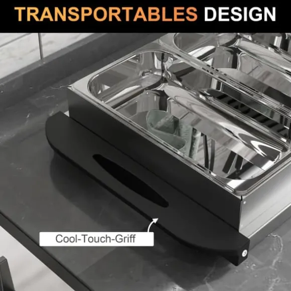Svalkande handtag: Tack vare de svala handtagen kan denna elektriska matvärmare transporteras säkert och enkelt utan risk för brännskador.