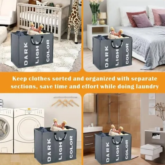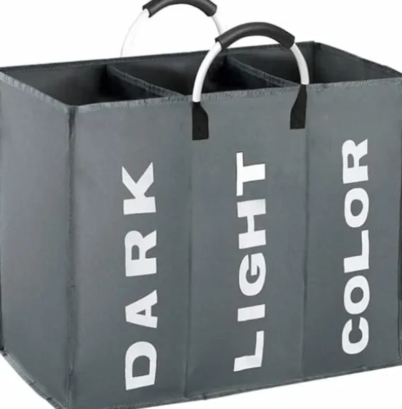 Praktisk 3-sektionsdesign – Håll ljusa, mörka och färgade kläder åtskilda i samma korg. Spara tid och gör tvättdagen mer effektiv.