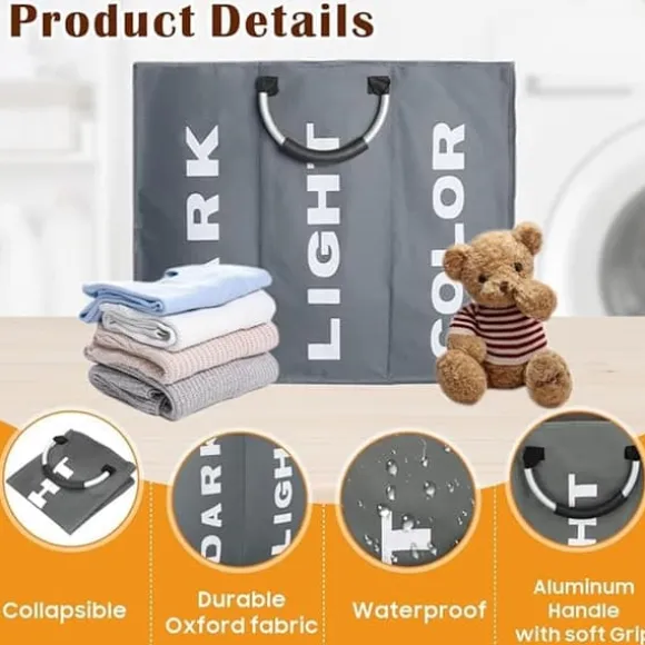 Tvättkorg med 3 Fack – Vattentät & Hopfällbar Tvättsorterare med Aluminiumhandtag