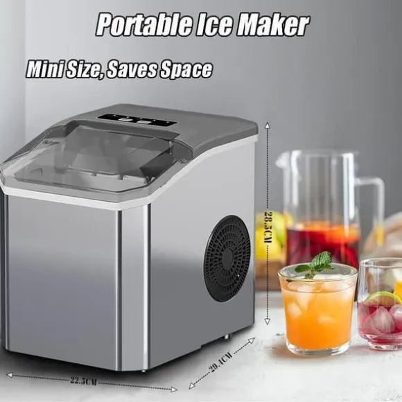 Kompakt och bärbar design: Den lätta och bärbara ismaskinen för bänkskivan är enkel att förvara eller transportera. Flytta enkelt denna kompakta maskin från rum till rum eller ta den till evenemang, vilket gör den perfekt för kök, kontor, barer, camping, husbilar eller fester.