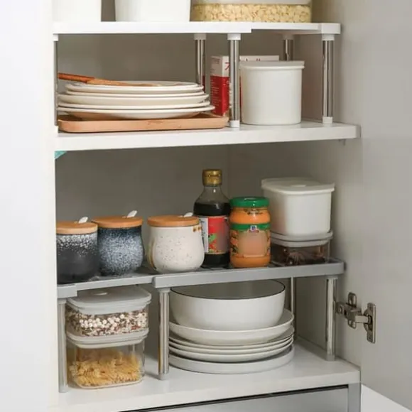 Detta kökshyllor passar också vardagsrummet, sovrummet, garderoben, garaget, duschrummet och mer annan plats. Perfekt för att hålla allt organiserat i köksskåp, skafferi, badrumsskåp, garderob, bänkskiva, under handfat.