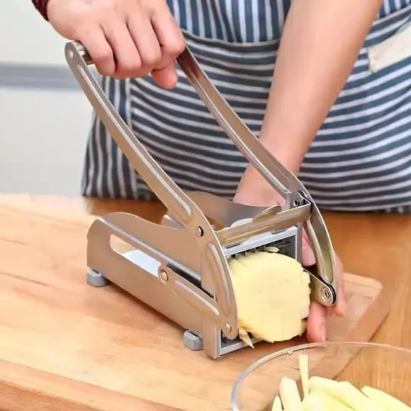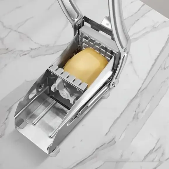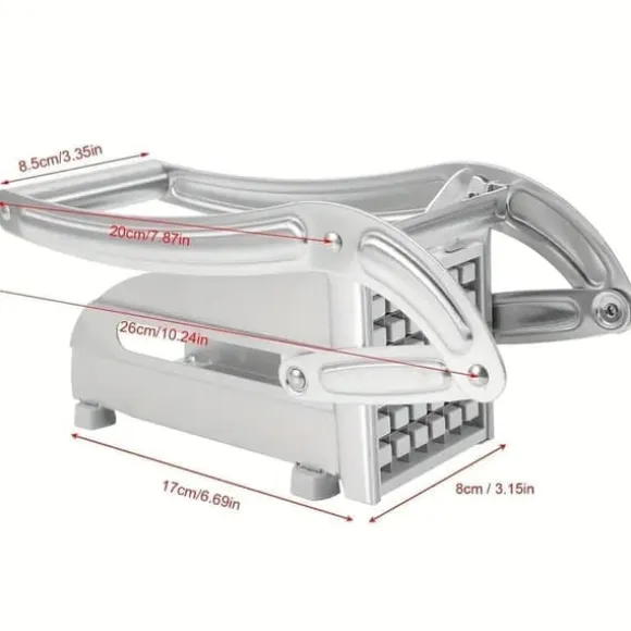 Gör perfekta pommes frites och skivade grönsaker enkelt hemma med denna robusta grönsaksskärare i rostfritt stål – idealisk för både hem och restaurangkök!