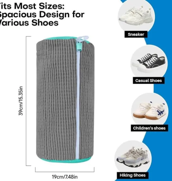 Skonsam tvättpåse med mikrofiber som rengör skor effektivt i maskin och skyddar dem mot slitage för längre livslängd.