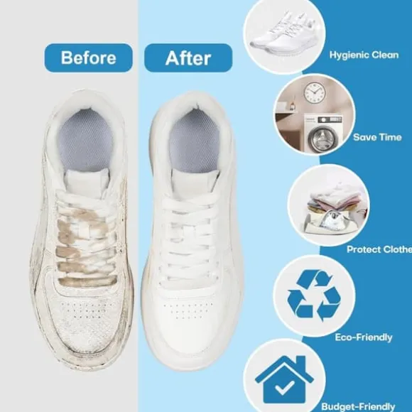 Utrustad med tusentals fluffiga mikrofibertrådar och ett smart nätmönster rengör tvättpåsen skonsamt men effektivt i alla riktningar. Den djuprengör skorna utan att du behöver skrubba och skyddar samtidigt mot slitage under maskintvätt. Perfekt för sneakers, vardagsskor och barnskor.