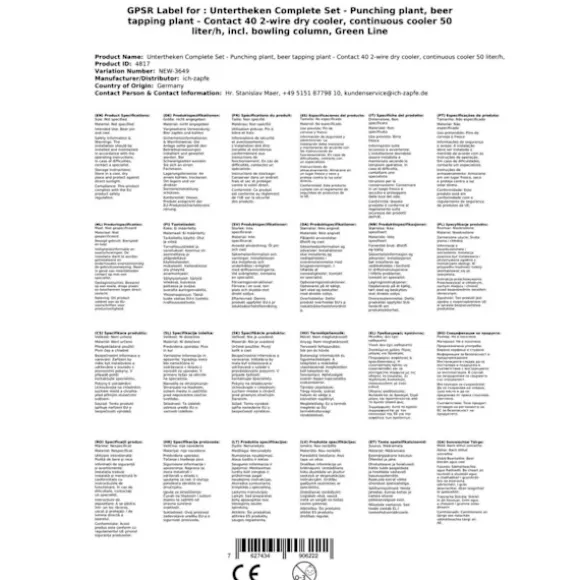 Underräknare komplett set – Öltapp- kontakt 40 2-sidigt torrkylare, kontinuerlig kylare 50 liter / h, inkl. Dispenserspelare, grön linje Utgång: 50 L / h vid 10 ° C TD Klar att användas på 2-4 minuter Torkt kylkran system 2-sidigt Lätt torr kylkran i rostfritt stål Kyltekniken är 45% effektivare Grön linje – miljövänlig Bestående av: •Kontakta 40 Öltapp 2-sidigt torrkylare, kontinuerlig kylare 50 liter / timme•lätt torr kylkran i rostfritt stål•Utmatningskapacitet: 50 l / h•inklusive rostfritt stål droppbricka•inklusive efterkylningskompensatorkran•Klar för användning på 2-4 minuter•Kontrollintervall +3 till +10 grader•Torkt kylkran system 2-sidigt Uppmärksamhet ny modell: •kraftfullare – ny kompressor•effektivare – 15% mer prestanda•mer miljövänligt – certifierat kylvätska R290•Uppfyller EU: s förordning 2021 Tekniska värden: •421 watt / 230V / 50Hz, 1,83A•1/5 hk•Mått: W / D / H 225/330/425 mm•Vikt: 26 KG•Tekniska specifikationer:•Anslutningar: John Guest 1x dispenser / pumpmodell, mattborstad, dubbelsidig2 x ölslang 7mm komplett, klar, 3,0 m2 x rengöringsadapter 30 mm1 x tryckreducerande 2-sidig CO2 för ölutmatare 3bar1 x CO2-flaska, 2,0 kg2 x CO2-slang komplett, 1,5 m2 x ölslang John Guest – 3/8 och 5/8 skruvkontakt 2,00 m – helt färdig!Koldioxidnyckel captive2 x dispenseringshuvud, ditt val: utan, platt, kombi, korg, Köpi