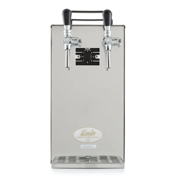 Komplett uppsättning Öltapp, ölkylare, ölmaskin, öldispenser, ölautomat, öltappingssystem – Kontakt 40/K, 2-linjers torrkylningsanordning av rostfritt stål, 50 liter/h, med membranpump, Green Line Kapacitet: 50 liter/h Redo att användas inom 2-4 min Öltappning 2 tappkranar med kylning Kyltekniken är i genomsnitt 45% mer effektiv Green Line – miljövänlig Vår Kontakt 40/K ölautomat innebär att du kan njuta av en perfekt kall öl direkt från fatet, oavsett tillfälle. Uppgradera din nästa fest eller event med vår kraftfulla och effektiva ölmaskin, som erbjuder en maximal kapacitet på 50 liter öl per timme. Effektiva Funktioner: •Kontakt 40/K krans inbyggda membranpump och kompressor eliminerar behovet av CO2.•Torrkylningsanordningen av högkvalitativt rostfritt stål säkerställer lång livslängd och hållbarhet.•Kraftfull motor på 1/5 hästkrafter för högpresterande tappning och dispensering.•Tapptrycket kan anpassas mellan 2,8 till 3,2 bar för en större mångfald av öltyper.•Inkluderar en praktisk droppbricka i rostfritt stål för att minska spill och efterkylningskompensatorutmatningskranar för en perfekt ölservering.•Enkel att använda med en snabbt starttid på bara 2-4 minuter.•Effektivt 2-rörs torrkylsystem som säkerställer optimal kylning och utmatning av öl.•Den avancerade kyltekniken gör vår ölmaskin 45% mer miljövänlig än andra ölautomater.•Den kompletta uppsättningen innehåller allt du behöver för att njuta av en kall öl av hög kvalitet direkt från fatet.•Kompatibel med olika fatkopplingstyper och storlekar. Den kompletta uppsättningen innehåller: •Kontakt 40/K Kran med membranpump och kompressor.•Torrkylningsanordning av rostfritt stål.•Krankapacitet på 50 l/h.•Krantryck på 2,8 – 3,2 bar.•Droppbricka i rostfritt stål och efterkylningskompensatorutmatningskranar.•Snabb starttid på 2-4 minuter.•2-rörs torrkylsystem.•2x tryckluftslang av hög kvalitet.•2x ölslang med John Guest 3/8 anslutning för 5/8 fatkopplingar.•2x fatkopplingar efter eget val (utan fatkopplingar, 5-liters adapter, platt, kombi, Köpi, triangulär, korg). Med vår ölautomat kan du bjud in dina gäster på en förstklassig upplevelse av en perfekt kall öl direkt från fatet med minimalt spill och snabb servering. Det här är den perfekta lösningen för barer, restauranger, fester, event, och privata sammankomster som kräver högsta kvalitet på ölen. Slipp trassel med flaskor eller burkar och välj vår Kontakt 40/K ölmaskin för en enkel och stilig servering av en kall öl direkt från fatet. Låt din fest eller event bli minnesvärd med den ultimata ölmaskinen från Green Line.