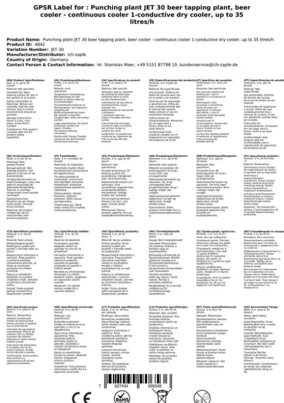 Öltapp, öldispenser, ölmaskin, ölautomat, ölkylare, öltappingssystem – JET 30 en linje torr kylare, 35 liter/h – Bierkoffer Öltapp JET 30 35 liter/h,Öllåda, flödeskylare, torrkylare 3 min packa upp… 2 min installation… 1 min anslut = oändligtNjut av en kall, klar, nytappad drink – du förtjänar det!Jet 30 ölkylaren är utmärkt för professionell kylning och servering av kyld öl hemma, på trädgårdsfester och för mindre kommersiellt bruk. •Kontrollområde+2 till +10 grader•Prestanda:35 l/h vid 10 ° C TD•Kylteknikär 45 % effektivare•Färdig för användningpå bara 2-4 minuter Om termostaten är inställd på max. kommer termoblocket (efter ca 10 minuter) att samla på sig en hög mängd energi, vilket gör att flera kylda öl kan serveras efter varandra.Kylningstekniken i JET 30 kransystemet är cirka 45 % effektivare än elförbrukningen.Ölet kyls ner till kranen.Kylslingorna är gjorda av rostfritt stål och är därför stabila och hållbara. Materialen som används uppfyller de högsta hygienkraven och gör att kylaren har en lång livslängd. JET 30 – Stark och snabb som ett jetplan Med sin starka kylprestanda och perfekta dimensioner är JET 30-dispensern en av de ledande bords-/underbordskylarna på marknaden. Kylkapacitet på 40 till 60 glas (0,5 liter) utmärkt kyld öl per timme, Den kraftfulla JET 30-kompressorn säkerställer minimal energiförbrukning och en utmärkt kyld öl utan skum Kontinuerlig flödeskylare JET 30 – effektivitet, prestanda, njutning Termoblocket i JET 30 ölkransystem har en hög energikapacitet, vilket innebär att en perfekt kyld öl kan tappas efter bara 2-4 minuter. Om termostaten är inställd på max. kommer termoblocket att ackumulera en stor mängd energi (efter ca 10 minuter), vilket gör att flera kylda öl kan serveras efter varandra. Kylningstekniken i JET 30-dispensern är cirka 45 % effektivare än elförbrukningen. Ölen kyls till kranen. Kylslingorna är gjorda av rostfritt stål och är därför stabila och hållbara JET 30 flödeskylare – tekniska data Den ädla JET 30 torrkylaren som bara väger 14,5 kg är utrustad med en 7 mm kabel.Högkvalitativ utförande och förpackning •Mått:B/D/H/ 167/281/(inklusive droppbricka)/368 mm•Spänning:230V , 50 Hz, 267W, 1,16A•Kompressor:1/8 HP•Linje:1 x öl•Hölje:Metall, pulverlackerad, rostsäker JET 30 – Toppen i sin klass Ölkylaren JET 30 är en av de bästa i kategorin ”utmatningssystem upp till 35 l/h” vad gäller kostnad,prestanda och kvalitetsförhållande. Enkel rengöring av JET 30-systemet Med följande rengöringsset kan du enkelt och bekvämt rengöra JET 30-dispensern efter användning: Rengöringsset litet Lättrengöringsset(rekommenderas) Städningsset stort Ölkylare JET 30 – lätt att använda – TOPP i prestanda Den trycks på med bara några få steg: Packa upp kransystemet Anslut tryckreduceraren till CO2-flaskan med hjälp av koldioxidnyckeln och dra åt den Anslut CO2-slangen från tryckreduceraren till munstyckshuvudet Anslut ölslangen till kranhuvudet och sätt in den i kransystemet och säkra den Prick pipan Ställ in krantrycket på tryckreduceraren Anslut dispensern till uttaget Justera trycket och njut av en kall öl Du kan hitta alla komponenter i den kompletta uppsättningen eller som tillbehör i vår butik