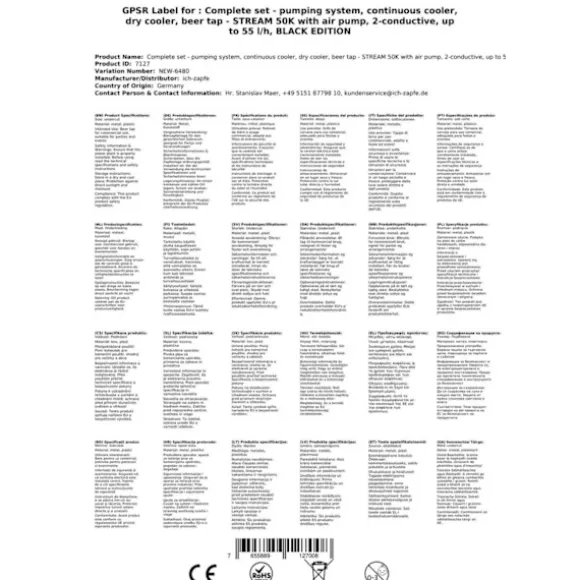Öltapp STREAM 50K med luftpump, ölväska, genomströmningskylare 2-radig torr svalare, upp till 55 liter / h – SVART UTGÅNG, KEG:Type M, KEG 2:Type M