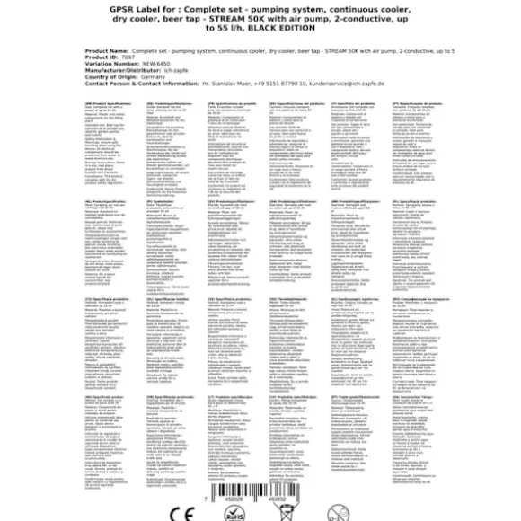Komplett under-counter-set – Öltapp, fatölsanläggning, ölmaskin, fatölskylare – STREAM 50K genomströmningskylare med luftpump, 2-linje, 55 l/timme, BLACK EDITION Komplett under-counter-set – Öltapp STREAM 50K 2-linjers ölutmatningssystem 55 liter / h, ölväska, genomströmningskylare, torrkylare 3 min packa upp … 2 min ställa in … 1 min ansluta = obegränsad njutning. En kall, klar, nypackad – du förtjänar det! Ölkylaren STREAM 50K 2lt är för professionell kylning och servering av utmärkt kyld öl i hemmiljön, på trädgårdspartier och avsedd för medelstort kommersiellt bruk. •Kontrollområde+2 till +10 grader•Effekt:55 L / h vid 10 ° C TD•Kylteknikär 45% effektivare•Redo för användningpå bara 2-4 minuter Om termostaten är inställd på max, ackumulerar termoblocken en stor mängd energi (efter cirka 10 minuter), vilket gör det möjligt att servera flera kylda öl efter varandra.Kyltekniken i STREAM 50K-kranläggningssystemet är cirka 45% effektivare än den elektriska strömförbrukningen. Ölet kyls ner till kranen. Kylöglorna är gjorda av rostfritt stål och är därför stabila och hållbara. Materialet som används uppfyller de högsta hygienstandarderna och gör att kylaren har en lång livslängd. STREAM 50K 2ltg. – och den kalla ölen flyter från två kranar Med sin starka kylprestanda och perfekta dimensioner är STREAM 50K-dispensern en av de ledande kyl- och bordskylarna med två rader på marknaden. Kylkapacitet på 80 till 90 glas (0,5 liter) utmärkt kylt öl per timme,Ingen användning av CO2 nödvändig – integrerad luftpump garanterar bekymmersfri och mobil utmatningDen kraftfulla STREAM 50K-kompressorn säkerställer minimal energiförbrukning och en utmärkt kyld öl utan skumning Kontinuerlig kylare STREAM 50K 2 rader. – Effektivitet, prestanda, njutning Termoblocket på STREAM 50K öldispenser har en hög energikapacitet, så en perfekt kyld öl kan utnyttjas efter 2-4 minuter. Om termostaten är inställd på max, ackumulerar termoblocken en stor mängd energi (efter cirka 10 minuter), vilket gör det möjligt att servera flera kylda öl efter varandra. Kyltekniken i STREAM 50K-krananläggningen är cirka 45% effektivare än elförbrukningen.Ölet kyls ner till kranen.Kylslingorna är gjorda av rostfritt stål och är därför stabila och hållbaraMaterialen som används uppfyller de högsta hygienkraven och gör att kylaren har en lång livslängd. STREAM 50K flödeskylare – tekniska data Den ädla STREAM 50K torrkylaren med en vikt på endast 34 kg är utrustad med en 7 mm kabel. Mått: W / D / H / 210х405х410 (inklusive droppfack) Spänning: 220V, 50 Hz, 267W, 1.16A Kompressor: 1/6 PS Hantering: 2 x öltyper Hölje: Metall, pulveriserad, rostskyddad Hög kvalitet på utförande och förpackning STREAM 50K – Topp i klassen med två linjedoseringssystem STREAM 50K ölkylare är en av de bästa i kategorin ”doseringssystem upp till 55 l / h” när det gäller kostnad, prestanda och kvalitet. Enkel rengöring av STREAM 50K-systemet Med följande rengöringsset kan du rengöra STREAM 50K-dispensern enkelt och bekvämt efter användning: Rengöringsset litet Lättrengöringsset (rekommenderas) Städningsset stort STREAM 50K ölkylare – enkel att använda – topprestanda Du kan trycka på i några enkla steg: Packa upp dispensern Anslut tryckluftsslangen till doseringshuvudet Anslut ölslangen till doseringshuvudet, sätt in den i doseringssystemet och fixera den Hål genom pipan Anslut dispensern till uttaget Ställ in trycket och njut av en kall öl Du hittar alla komponenter i hela uppsättningen eller som tillbehör i vår butik