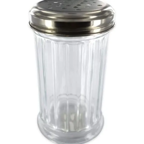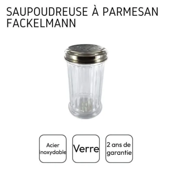BESKRIVNING: Parmesan- eller florsockerströare i glas med lock i rostfritt stål. Det tjocka siktet på denna ströare gör att parmesan eller mandel- eller kokospulver kan passera. LILLA +: Ströaren är ett elegant redskap som lyfter din dukning eller hylla förutom att vara användbar för att strö florsocker över dina våfflor eller för att göra parmesanrisotto. SAMMANSÄTTNING: Glas, rostfritt stål. DIMENSIONER: 13,5 x 7,5 x 7,5 cm. INNEHÅLL: 1 ströare för parmesanrisotto. Detta köksredskap är en parmesanströare och används för att hälla din riven parmesan på din tallrik eller maträtt. Med denna parmesanströare kan du riva din egen ost och sedan förvara den i denna burk så att du snabbt kan använda den. Parmesan används ofta i Caesar-sallad, i risotto, i pasta osv. Detta köksredskap kan användas för att innehålla andra livsmedel än parmesan, och särskilt pulver. Du kan lägga i kakao, florsocker, mandelpulver, mjöl och annat i denna ströare. Fackelmann Frankrike är ett företag som specialiserar sig på distribution av köks- och bakredskap samt bakformar och plåtar. Företaget försöker ge en viss lätthet i hur var och en lagar mat med sina smarta redskap. Köksredskapen från Fackelmann Frankrike erbjuds till alla typer av kockar för enkel och daglig användning. Vispar, spatlar, slevar, skalare, skärbrädor och mycket mer står till ditt förfogande för att förbereda läckra och alltid mer originella recept.