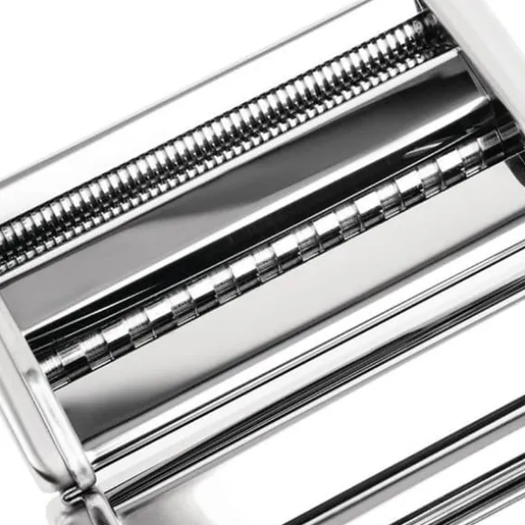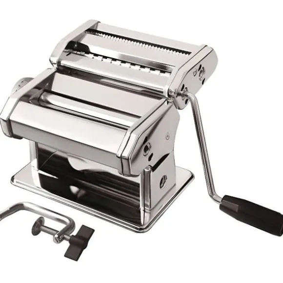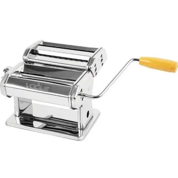 Upptäck Vogue:s professionella pastamaskin, perfekt för att förbereda fettucine, lasagne och spaghetti. Tillverkad i rostfritt stål, erbjuder den förnicklade valsar för pasta i olika tjocklekar. Lätt att underhålla, den är perfekt för hemmabruk.