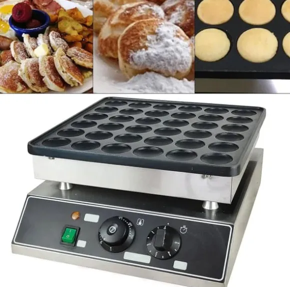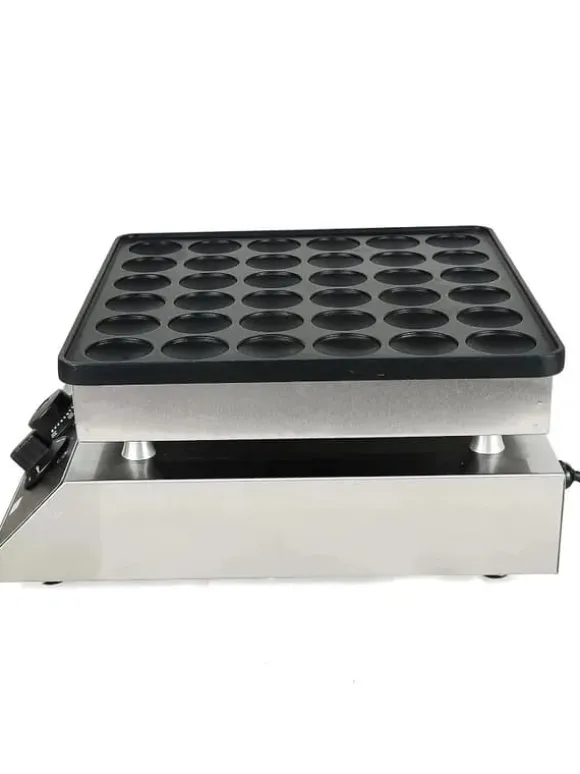 Professionell pannkaks-/våffelmaskin i rostfritt stålKraftfull maskin som levererar små, runda våfflor med jämn gräddning. Hölje i rostfritt stål och aluminiumformar med nonstick-beläggning ger enkel rengöring, hög hållbarhet och stabil prestanda för kök, café eller catering.