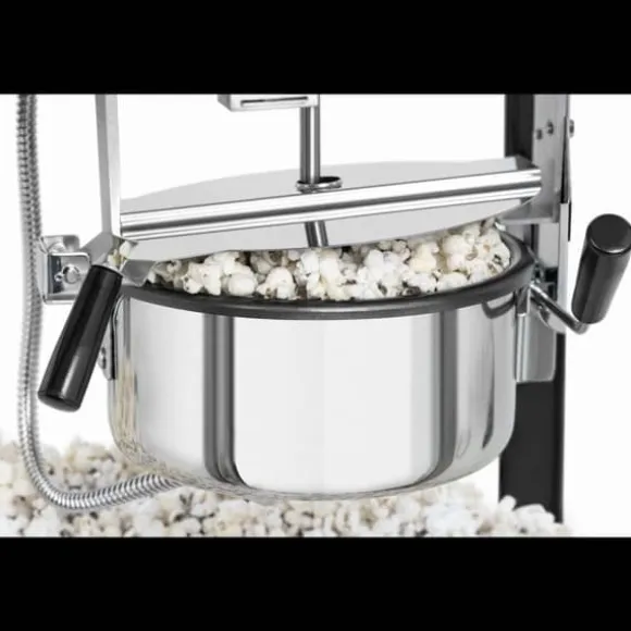 Popcornmaskinen är till stor del tillverkad i högkvalitativt rostfritt stål och är därför lätt att rengöra och är effektivt skyddad mot korrosion. Rutorna är gjorda av härdat glas, vilket innebär att om en olycka skulle inträffa så smälter rutorna i små bitar istället för att splittras i större skärvor. Detta gör popcornmaskinen extra säker och förhindrar att allvarliga olyckor inträffar. Glasrutorna och den upplysta interiören dig dessutom möjlighet att alltid hålla ett öga på popcornproduktionen och lockar också till sig kunders uppmärksamhet.