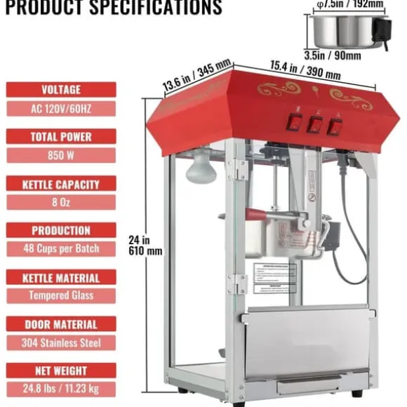- Effektiv med kapacitet på 8 oz för 48 koppar popcorn per omgång