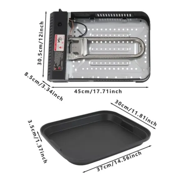 - Grillpanna: 37 × 30 × 3,5 cm