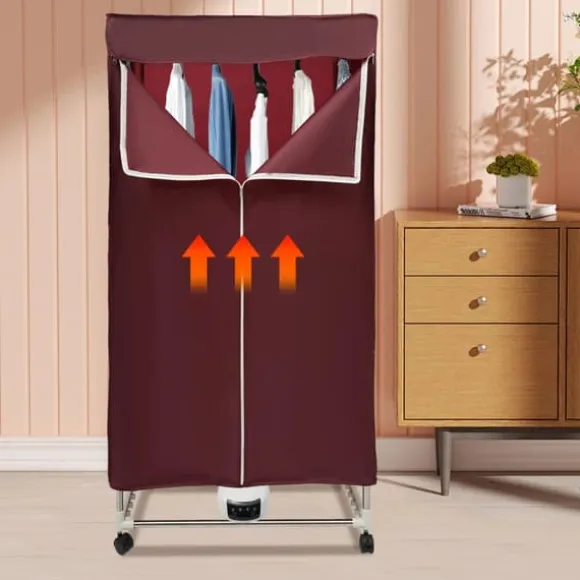Kraftfull vinröd torkgarderob med pekskärmDenna fristående tork för kläder i elegant vinröd finish kombinerar effektiv PTC‑värme med bekväm pekskärmsstyrning. Med upp till 1500 W, 3 lägen och timer upp till 240 min torkar den skonsamt vid 60–70 °C – perfekt för hem, lägenhet, studentboende eller hotell.