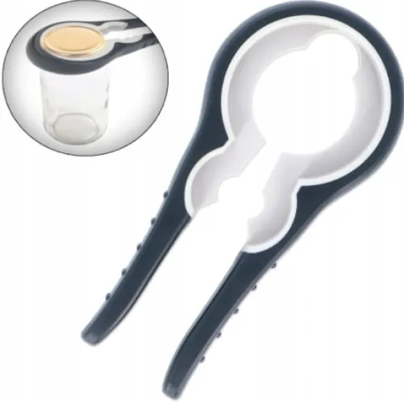 Burk- och flasköppnare har två klämfält – för små och bredare korkar på flaskor och burkar. Öppnaren har