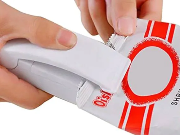 Praktiskt Påsförseglare. Försegla plastpåsar hemma med denna smarta kökspryl! Med ordentligt förslutna påsar håller du din mat fräsch mycket längre. Med den här lilla och smidiga påsförseglaren kan du försegla dina påsar på noll tid!