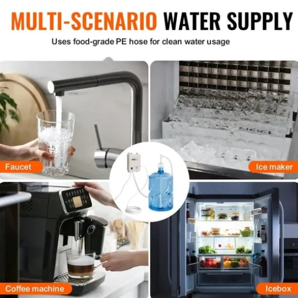 Bred användning: Detta dispenseringssystem är mycket mångsidigt, kompatibelt med vatten på flaska och kan fungera som en källa till rent vatten för kranar, kylskåp, ismaskiner och kaffemaskiner, vilket förbättrar livskvaliteten genom att tillhandahålla rent och säkert dricksvatten.