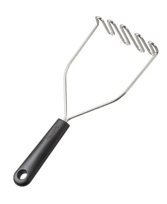 Stadig press i rostfritt stål med stadigt och ergonomiskt handtag i plast.