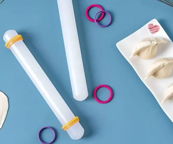 - Exakt rullning med silikonringar: De medföljande ringarna gör att du kan kavla ut degen jämnt till en tjocklek av 1,5 mm eller 3 mm, vilket säkerställer perfekt resultat.