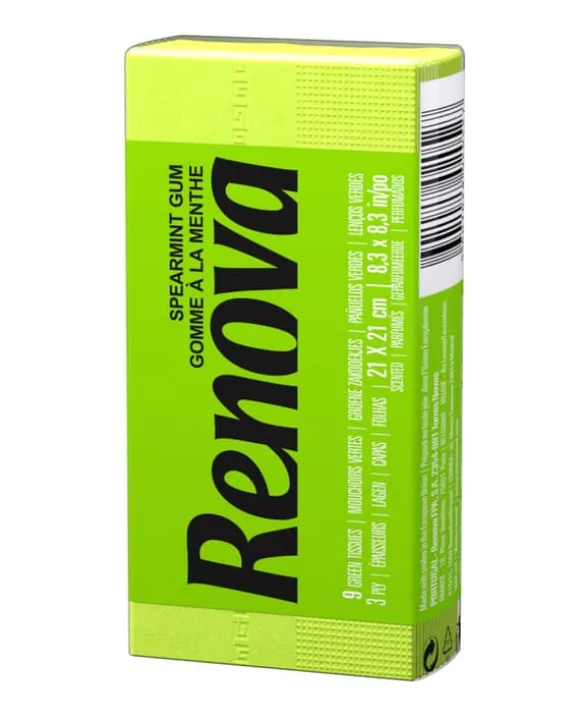 Varje våtservett har två sidor – grön på utsidan och vit på insidan. De är tillverkade av tre lager papper och har en grön mintdoft. Visa dina sanna färger.