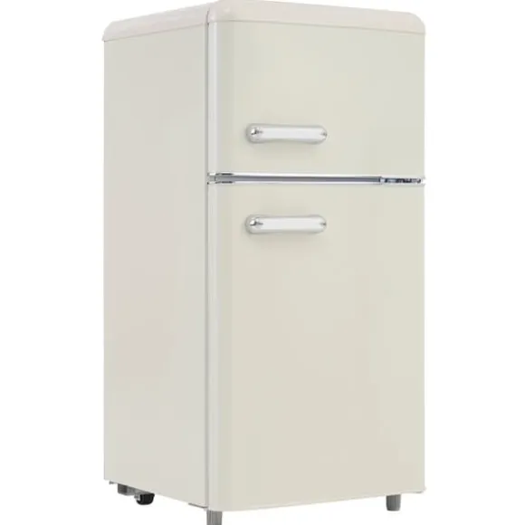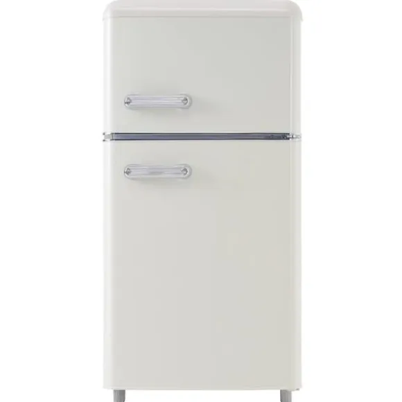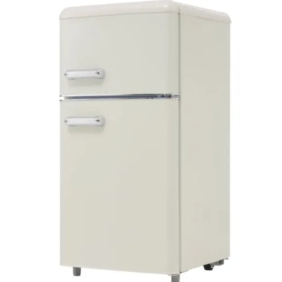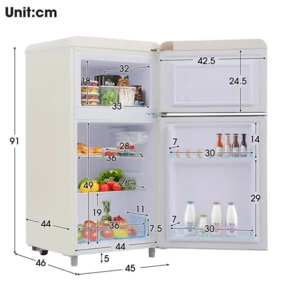 Detta retro kylskåp med dubbeldörrar kombinerar stil och funktionalitet. Med en total kapacitet på 72 liter, inklusive 21 liter för frysfacket och 51 liter för kylfacket, är det perfekt för mindre hushåll eller som extra förvaring. Det erbjuder justerbara hyllor och ett praktiskt designval för att passa ditt kök.