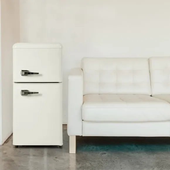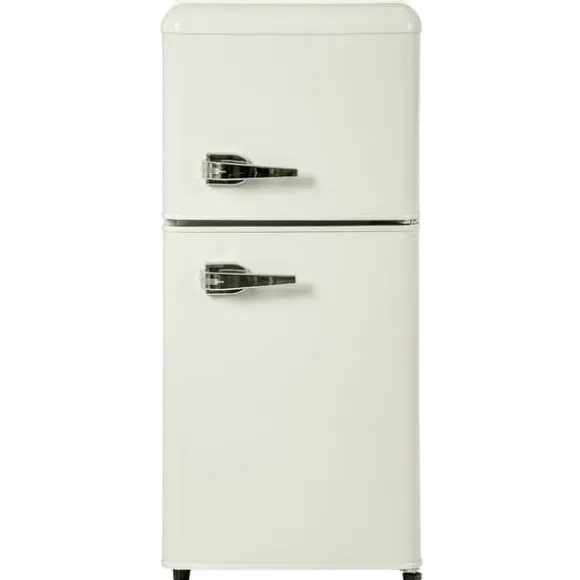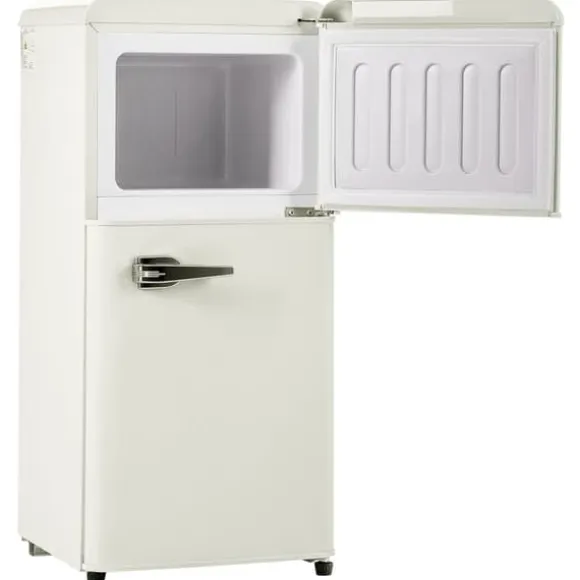 Retro-Kylskåp, Gefrierkombination, 88.8 cm, 60L kyl, 22L frys, 102 kWh/år, LED-ljus, Cremevit, Energieklass E