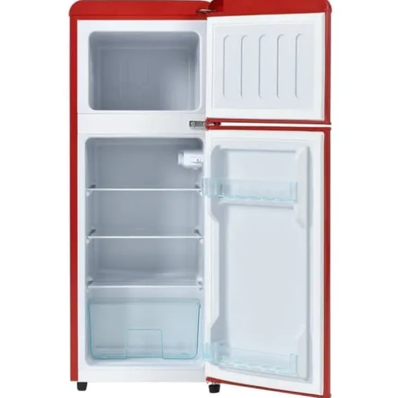Kompaktes Design mit Retro-Ästhetik, ideal für kleine Räume oder als Backup-Kühlschrank