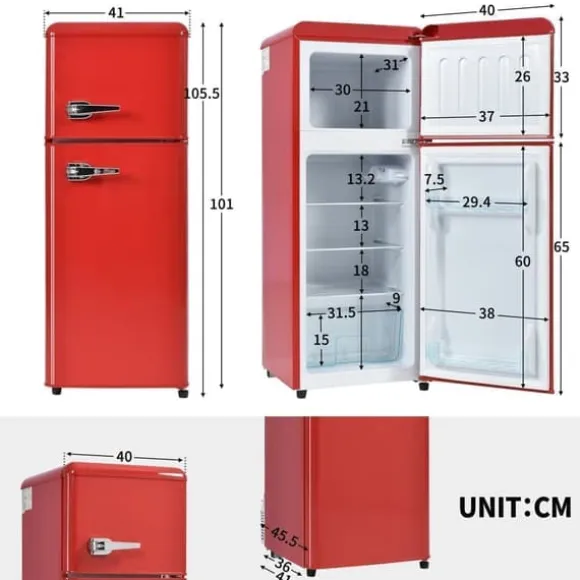Retro-Kylskåp, Kombinerad kyl och frys, 105.5 cm, 92L, 28L frys, 116 kWh/år