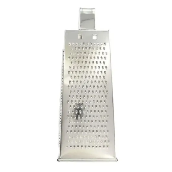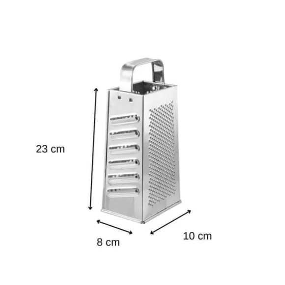 BESKRIVNING: Fackelmann erbjuder denna 4-sidig rivjärn på 23 cm. Detta rivjärn är 4 i 1 eftersom det har 4 sidor och därmed 4 olika rivstorlekar. Små, medelstora och stora rundlar + en sida som skivar. DET LILLA +: Det har ett handtag på ovansidan vilket gör det hanterbart, lätt att använda och framförallt stabilt. KOMPOSITION: Blankplåt. DIMENSIONER: 23 cm. INNEHÅLL: 1 x 4-sidigt rivjärn. Ingen diskmaskin, endast handtvätt. Detta rivjärn för ost är manuellt och universellt då det gör det möjligt att riva eller skiva ost, grönsaker eller frukter. Det professionella ostrevet har två diametrar för rivning eller ett blad för att skiva som en mandolin. Tack vare detta köksredskap kan du förbereda råkostsallader, riva parmesan på din tallrik eller gruyère. Fackelmann France är ett företag som specialiserar sig på distribution av köks- och bakredskap samt bakformar och ugnsplåtar. Företaget strävar efter att underlätta matlagningen för alla genom sina smarta redskap. Köksredskapen från Fackelmann France erbjuds alla typer av kockar för enkel och daglig användning. Vispar, spatlar, slevar, grönsaksparare, skärbrädor och många fler står till ditt förfogande för att förbereda utsökta och alltid mer originella recept.