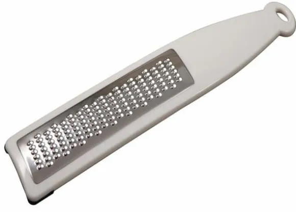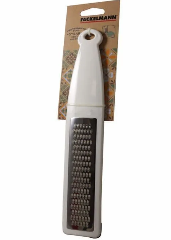 Denna FACKELMANN rivare är idealisk för att riva ost, frukt, grönsaker, ingefära och gurkmeja. Med ett hål för upphängning är den lätt att rengöra för hand. Tillverkad i plast och rostfritt stål, mäter den 29 cm och väger 70 g. Perfekt för daglig användning.