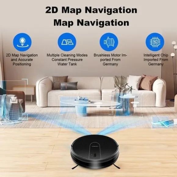 Inlopps- och borstlös motor: Denna robotdammsugare drivs av en kraftfull borstlös motor. Därför har den stark sugkraft och en unik luftinloppsdesign, som inte blockeras av djurhår som andra robotdammsugare med rullar. Idealisk för husdjursfamiljer. Sido borstarna kan snabbt samla upp och absorbera stora partiklar och fint damm utan att lämna några hygieniska döda vinklar.