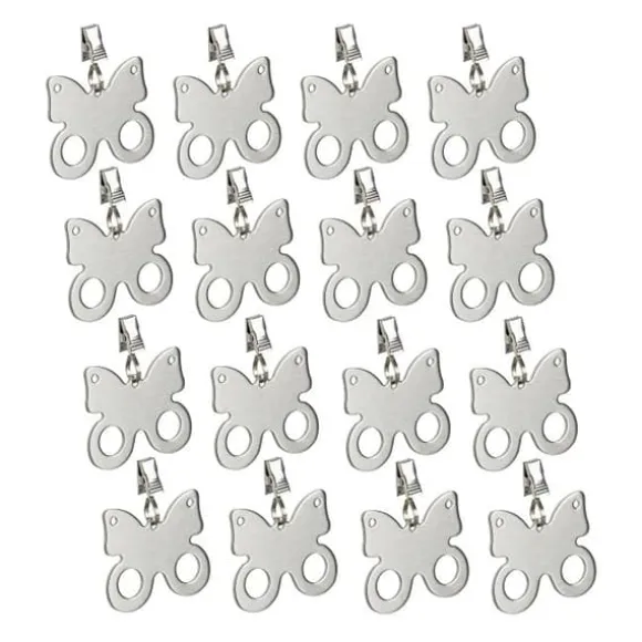 Dukvikter i rostfritt stål Vid en grillfest i trädgården kan en liten vindpust snabbt förvandlas till en strid med duken. Köp detta set med 16 dukhållare så att du kan äta och dricka i lugn och ro trots en lätt bris. Dukvikterna, som är fästa på duken, har också en dekorativ effekt tack vare sin tidlösa fjärilsdesign. Tillverkade av slitstarkt rostfritt stål, är dessa dukvikter lämpliga för både inomhus- och utomhusdukar.