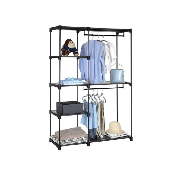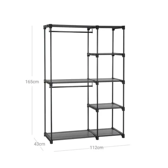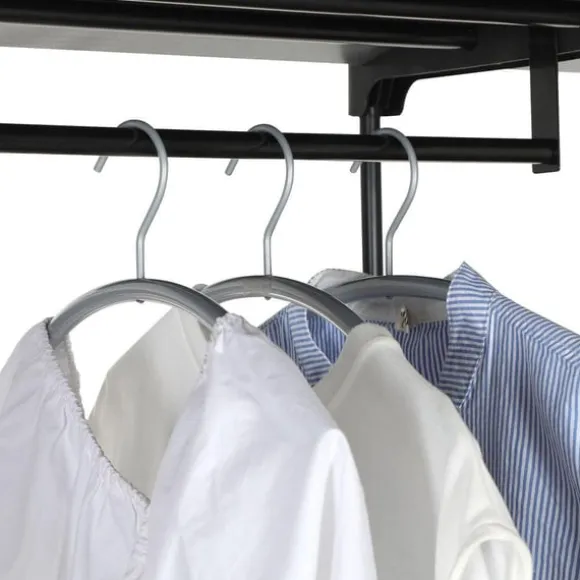 Så nästa shoppingrunda kan komma! Häng dina nyinköpta kläder snyggt på de 2 klädstängerna och ställ dina favoritväskor på hyllorna. Allt redo att lämna in den här garderoben – så att välja en outfit på morgonen är kul igen