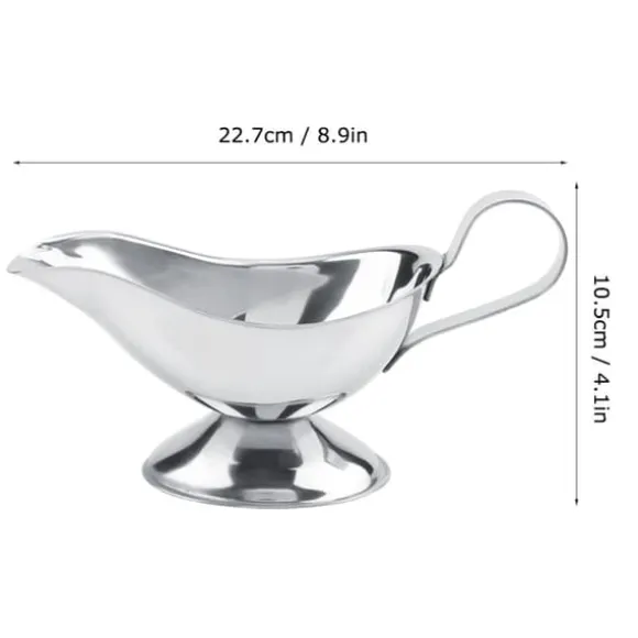 Välkommen till vår butik! Denna högkvalitativa såsskål i rostfritt stål är tillverkad av livsmedelsklassat material, vilket garanterar en miljövänlig, hälsosam och säker upplevelse. Den har en läckagesäker ankmunn för smidig och enkel hällning. Det ergonomiska handtaget ger ett bekvämt grepp och hjälper till att förhindra skållning. Med en ovalformad halkfri bas förblir den stabil och säker på alla ytor. Dess unika och klassiska utseende ger en touch av restaurangliknande elegans till din hemmamatsal. Finns i flera storlekar: 3oz (14*8cm / 5.5*3.2in), 5oz (16.5*8.5cm / 6.5*3.4in), 8oz (21.5*10.5cm / 8.5*4.1in) och 10oz (22.7*10.5cm / 8.9*4.1in). Vikten varierar från cirka 75g till 151g (2.6oz till 5.3oz). Varje beställning inkluderar en såsskål i rostfritt stål. Observera att manuell mätning kan resultera i ett fel på 0-2,5 cm, och färgen kan variera något på grund av skillnader i bildskärmen. Nöjdhet: Våra kunder är vår högsta prioritet. Om du upptäcker några produktproblem efter att du mottagit varorna, såsom skador eller felaktig mängd varor, vänligen kontakta säljaren omedelbart. Vi gör vårt bästa för att ge dig tillfredsställande kundservice.
