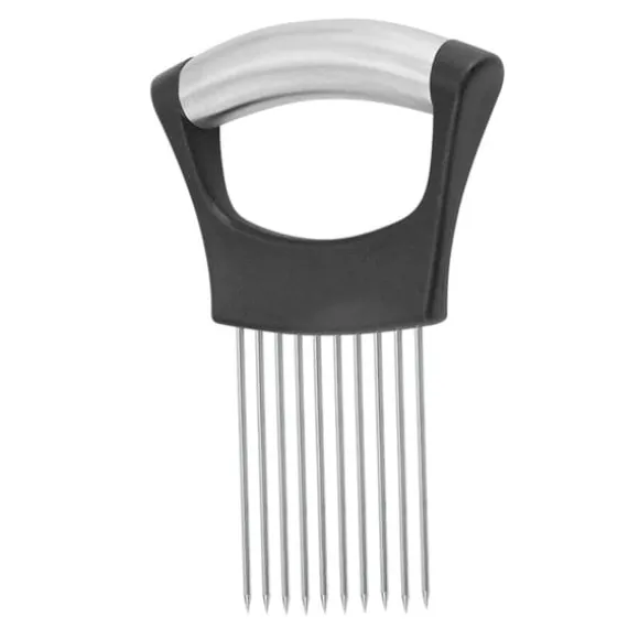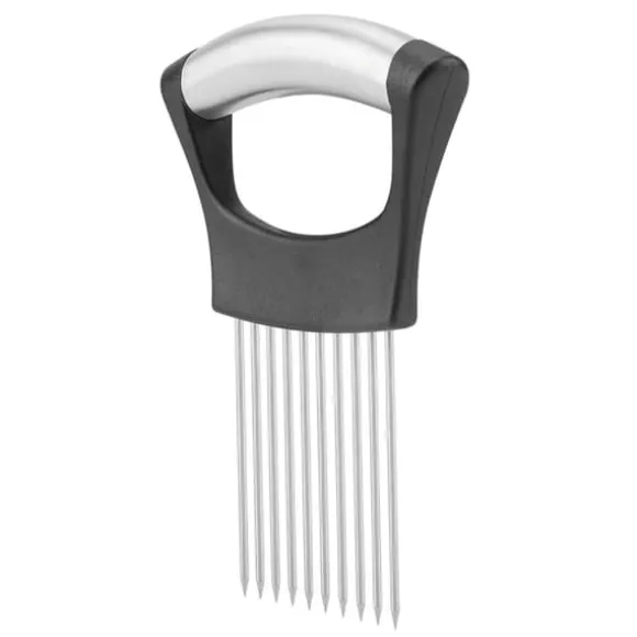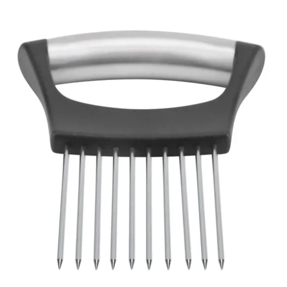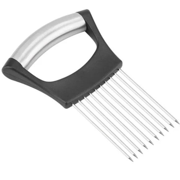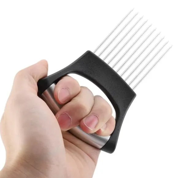 Välkommen till vår butik! Vår högkvalitativa lökskärare i rostfritt stål är utformad för hållbarhet, hälsosäkerhet och rostbeständighet. Den har 10 rostfria stålstift för att hålla löken stadigt, så att du kan skära den jämnt med en vass kniv. Detta mångsidiga verktyg kan också säkert hålla grönsaker och frukter som zucchini, gurka, tomater och mer för skivning, skärning, hackning eller skalning, och den fungerar till och med som köttskärare. Med en ergonomisk design hanterar den enkelt oskalad potatis och har halkfria, mjuka handtag för bekväm och tryckabsorberande användning. Rengöringen är enkel med en borste. Produkten är tillverkad av 304 rostfritt stål och ABS, mäter cirka 14*9,8*2 cm (5,5*3,9*0,8 tum) och levereras i silverfärg. Din beställning inkluderar en lökhållare. Nöjdhet: Våra kunder är vår högsta prioritet. Om du upptäcker några produktproblem efter att du mottagit varorna, såsom skador eller felaktig mängd varor, vänligen kontakta säljaren omedelbart. Vi gör vårt bästa för att ge dig tillfredsställande kundservice.