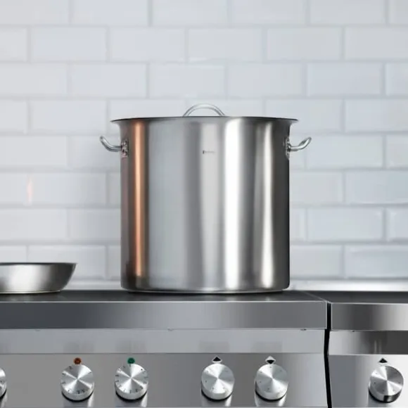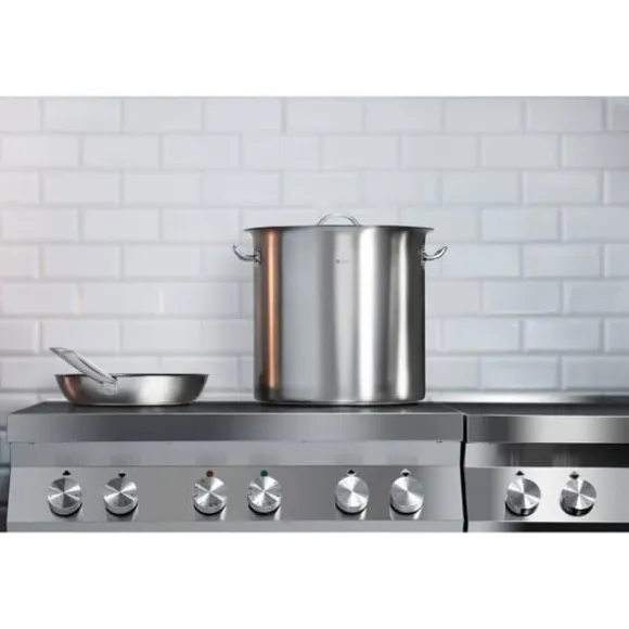 Kokkärlet och locket är gjorda av extra slitstarkt, rostfritt stål, speciellt konstruerat för professionell användning. Grytan har en lång hållbarhet genom den noggranna tillverkningen med förstklassiga material. Den höga kvaliteten kombineras med elegant design. Materialet absorberar ingen lukt, är särskilt hygieniskt och ofarligt för hälsan, vilket är viktigt för tillbehör som kommer i kontakt med livsmedel och används för livsmedelsproduktion.