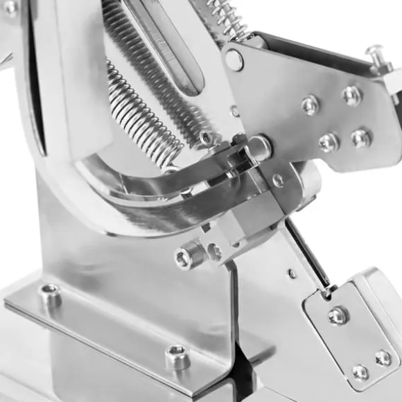 Alla viktiga element är gjorda av förkromat järn och rostfritt stål. Den stabila konstruktionen garanterar en lång livslängd. Den manuella klipsmaskinen uppnår optimal stabilitet tack vare sin breda bas, stödd av gummifötter. För ytterligare stabilitet kan klipsmaskinen skruvas fast i underlaget. Klipsmaskinen är enkel att rengöra och är idealisk för daglig användning i professionella livsmedelsföretag eller privat.