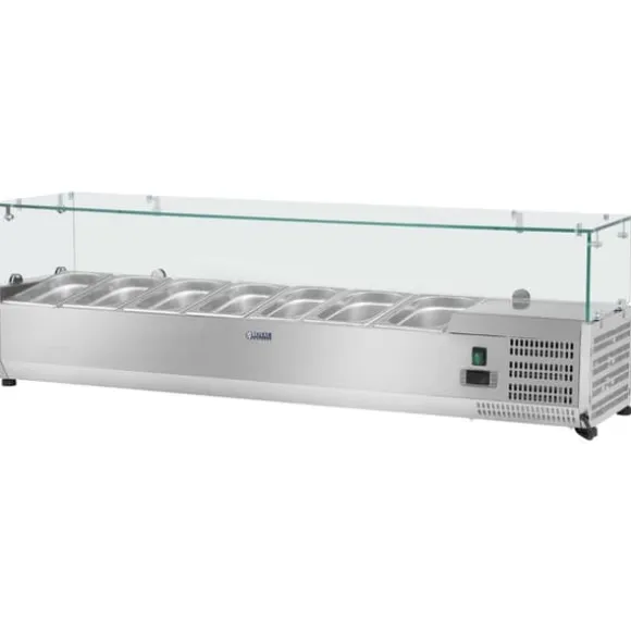 Kylränna – 160 x 33 cm – 8 GN 1/4 behållare – glasöverbyggnad