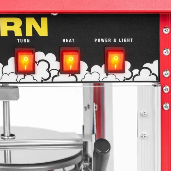 Popcornmaskinen RCPR-16E från Royal Catering är speciellt designad för professionellt bruk och är ett absolut blickfång. Den imponerar inte bara med sin snygga design med det tilltalande röda, emaljerade taket, utan också med en uppvärmd och upplyst kammare, ett omrörningssystem och en automatisk termostat. Dra fördel av popcornmaskinen RCPR-16E och låt dig övertygas av en extraordinär popcornupplevelse – vare sig det är på bio, på mässor eller festivaler!
