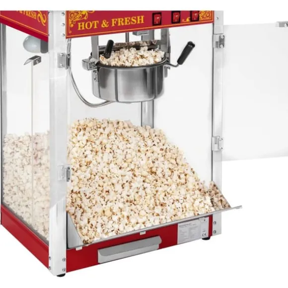 Popcornmaskinen RCP-16.3 från Royal Catering är speciellt lämpad för professionellt bruk och erbjuder en tilltalande design – oavsett tillfälle. Den utmärker sig inte bara genom en upphettad bottenplatta och ett kraftfullt uppvärmningselement, utan även med den speciella amerikanska designen. Med den amerikanska rödglänsiga retro-designen sticker popcornmaskinen ut i mängden och inspirerar inte bara popcornälskare.