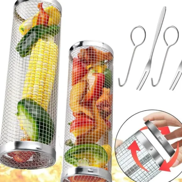 Rullande Grillkorg i Rostfritt Stål – 2-delad Set, Diskmaskinssäker & Mångsidig