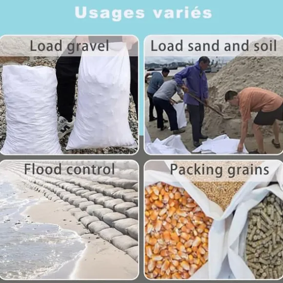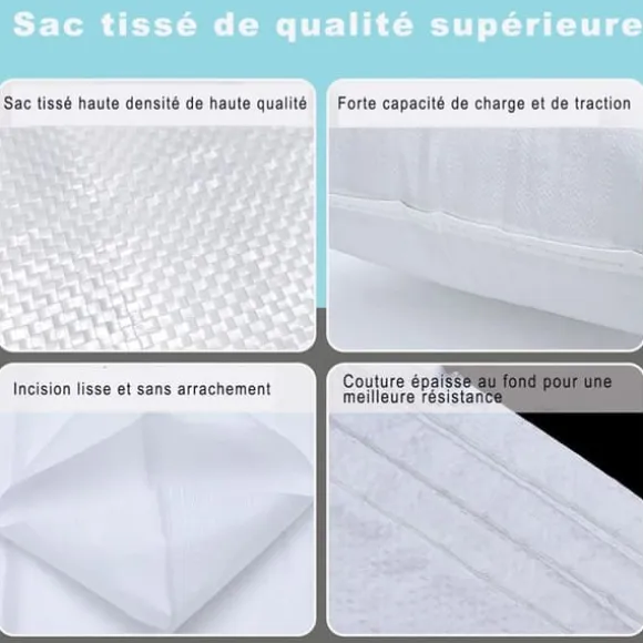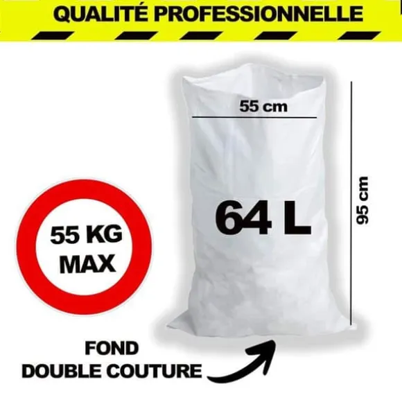 Egenskap: Den är dessutom förstärkt i botten med dubbel söm. Den har också en söm vid öppningen för att förstärka öppningen och förhindra uppflikning, sömmen har en styrka som möjliggör flera användningar, vävd polypropen förlänger livslängden på påsen och gör att den kan innehålla olika typer av material;